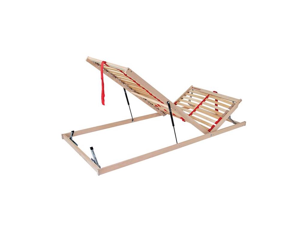 Kvalitní lamelový rošt za dobrou cenu - to je Primaflex. Rošt s vyklápěním nožní části pomocí pístu vám zajistí jednoduchý přístup do celého úložného prostoru pod lůžkem. Zároveň lze rošt napolohovat v oblasti hlavy i nohou pro pohodlí a relax na lůžku. Zdvih pomocí textilního úchytu usnadní každodenní manipulaci. Pružné lamely uložené ve dvojicích v kaučukových pouzdrech tvoří 3 anatomické zóny. Středový popruh zlepšuje stabilitu roštu. Posuvnými objímkami lze nastavit individuální tuhost v bederní části.